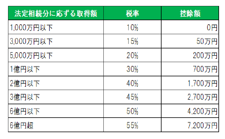 相続税は、@正味の財産を算出し、A控除を引いて、B残ったものに上記の表を当てはめて計算します。