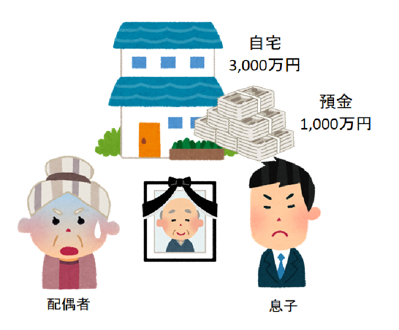 配偶者が亡くなって、遺産が自宅3,000万円・預金1,000万円の場合