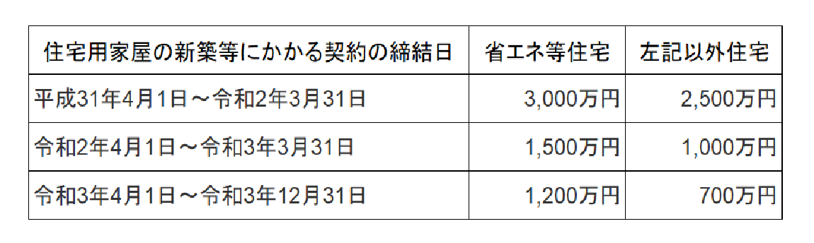 この制度は令和3年12月31日までに、父母や祖父母等の直系尊属から住宅を取得するための資金を贈与された場合、一定の金額まで贈与税が非課税になるというものです。