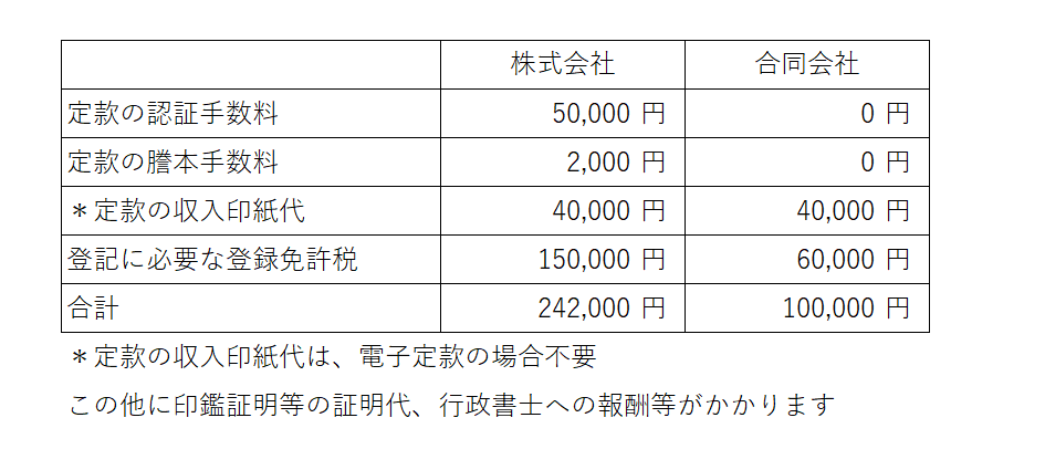 - 収入印紙(40,000円)・・・電子定款の場合不要